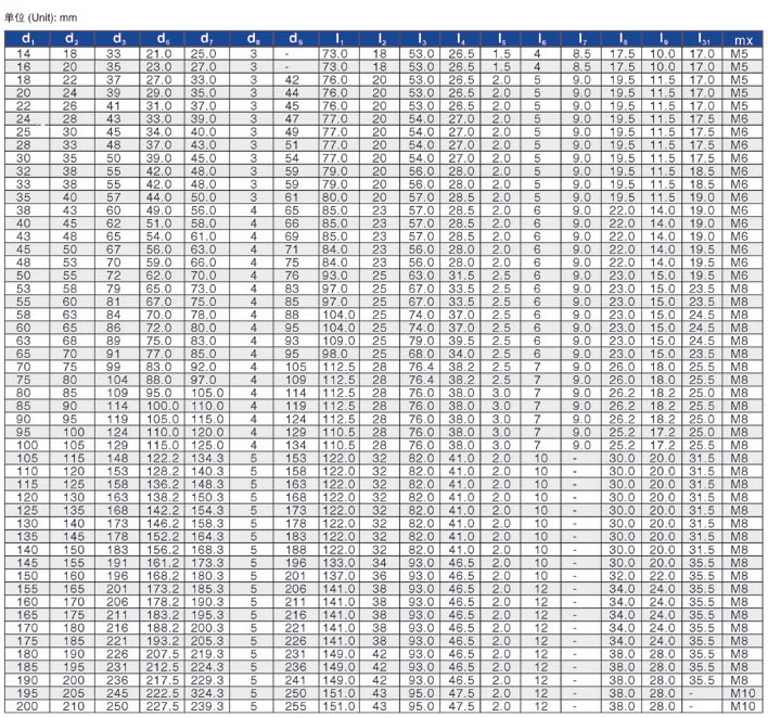 双端面 / 非平衡性 / 任意旋向 / 多弹簧结构,具有与“H7N”系列同样设计性能,除驱动座的安装长度外,其它安装尺寸(d1<100mm)符合DIN24960标准。